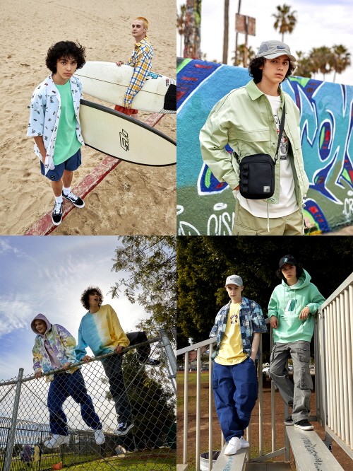 또 스케이트보드, 테마파크, RC카를 비롯한 레트로 감성을 유쾌한 그래픽으로 풀어내 아이템을 하나하나 뜯어보는 재미가 쏠쏠하다. 대부분 아이템에 S/S 시즌 특유의 라이트한 컬러를 적용해 경쾌함 또한 돋보인다.