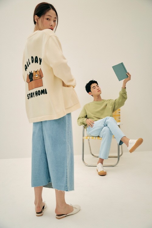 가격은 스웨트셔츠 39,900~49,900원, 조거팬츠 39,900원, 반팔 티셔츠 19,900~25,900원, 카디건 59,900원, 파자마 19,900~25,900원, 에코백 25,900원, 우산 19,900원이다.