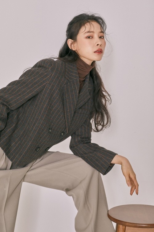 대표 상품인 테일러드 일자핏 싱글 숏자켓은 총장 61cm의 적당한 기장과 고급스럽고 은은한 패턴 디자인으로 코디 부담을 줄였다. 소재는 양모가 함유되어 더욱 따뜻하다.