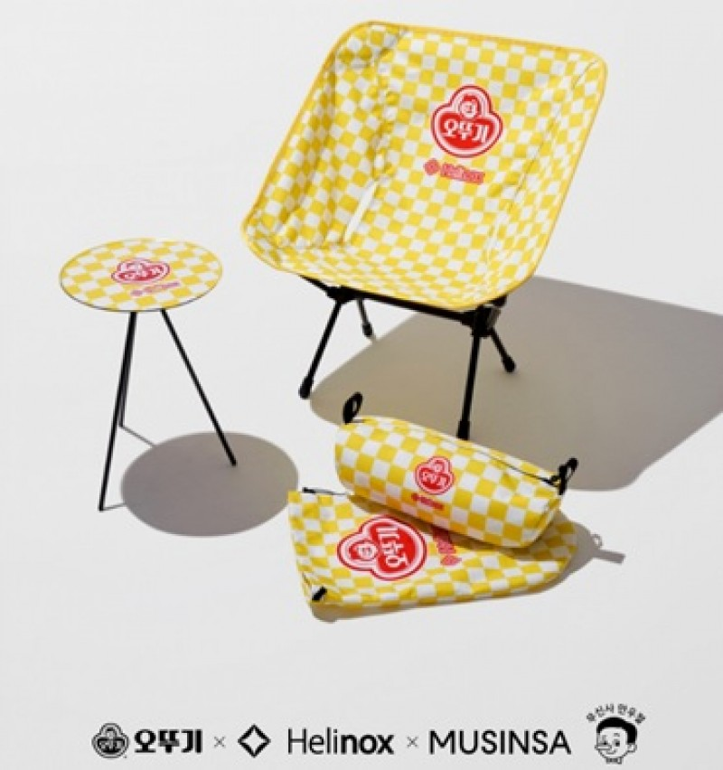 헬리녹스가 만우절 이벤트를 통해 소개하는 제품은 헬리녹스만의 기술력이 담긴 캠핑 용품에 식품 전문 브랜드 오뚜기의 로고 패턴을 적용한 체어, 테이블 세트이다. 콤팩트한 사이즈로 휴대가 간편해 어디서든 쉽게 사용할 수 있는 체어 원과 테이블 오에 오뚜기 상징인 옐로 체커보드 패턴과 레드 로고 그래픽을 위트 있게 표현했다.
