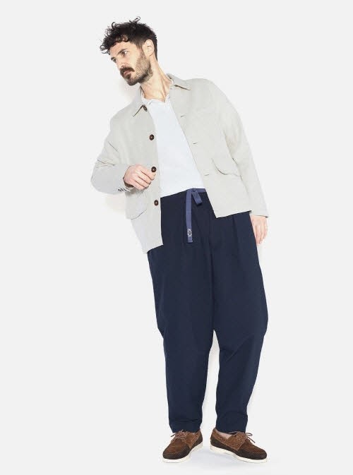 특히 멋스럽지만 심플한 디자인에 기본 컬러인 베이지와 네이비로 구성되어 다양한 스타일링이 가능하다. 산뜻한 봄과 어울리는 화려한 패턴의 셔츠 또는 넉넉한 품의 코튼 자켓과 매치한다면 트랜디한 셋업 스타일을 완성할 수 있다.