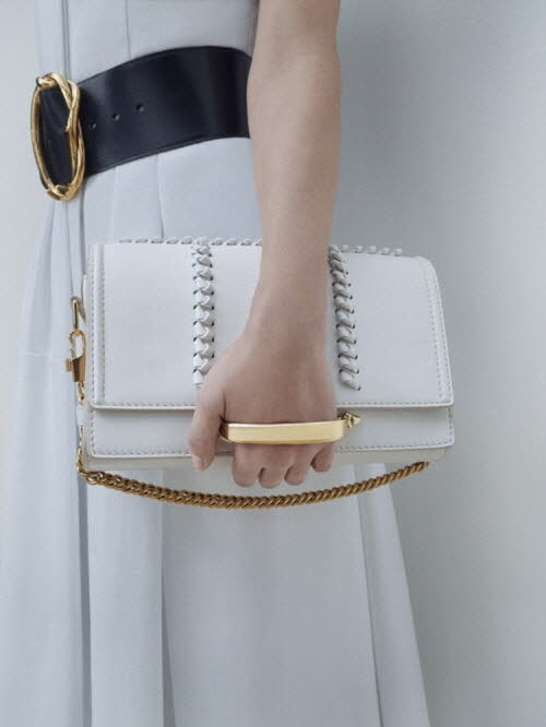 체인 스트랩을 사용해 숄더 스타일 뿐만 아니라 가방 아래 부착된 가죽 고리 양쪽으로 통과시켜 다양하게 활용 가능하며 또는 전면 메탈 핸들을 사용해 손으로 들거나 클러치로도 착용 가능해 낮부터 저녁 외출까지 사용할 수 있다.