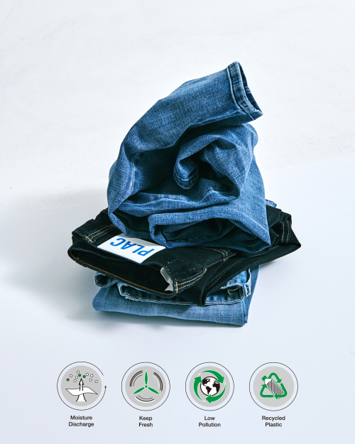 에코메이드 쿨 진은 쿨맥스 원단을 사용해 뛰어난 흡수성과 발수성을 자랑한다. 여기에 플라스틱을 재활용한 데님 소재로 친환경적인 부분까지 고려해 다른 쿨 진과 차별성을 두었다.