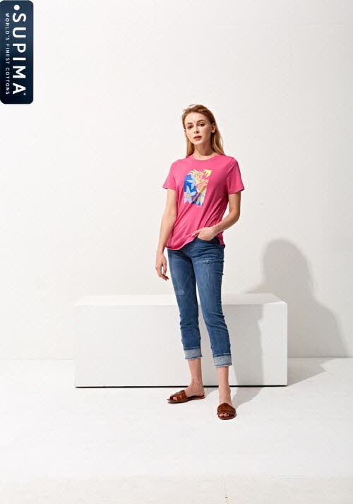 또한 가성비를 겸비한 이너용 수피마 코튼 프린트 티셔츠도 함께 선보였다. 상큼한 캔디 컬러의 핑크, 옐로우, 베이직 블랙 컬러로 구성되었으며 유화 스타일의 원포인트 프린트한 반팔과 네이비 와인 컬러의 7부 소매 기장 등 2가지 버전으로 출시했다.