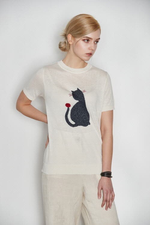 여성 제품의 경우 인타샤 기법으로 고양이를 표현한 스톤아이보리 컬러를 공통으로 ‘맑고 푸른 하늘’이라는 의미의 자수 레터링 니트 블루, 네온, 핑크 컬러 중 1가지를 선택하면 된다.