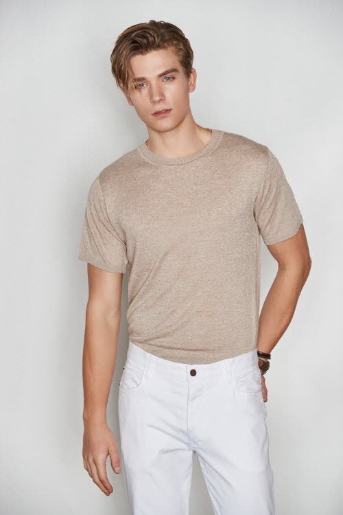 리넨 혼방 반팔 니트는 유럽을 대표하는 방적 원사 회사인 알프스 사의 리넨 혼방 원사로 제작됐다. 리넨 소재의 가장 큰 장점인 우수한 통기성과 흡습성으로 쾌적함과 시원한 청량감은 물론 이태리 자연 특유의 색채를 담은 컬러로 고급스럽고 세련된 룩킹을 선사한다.