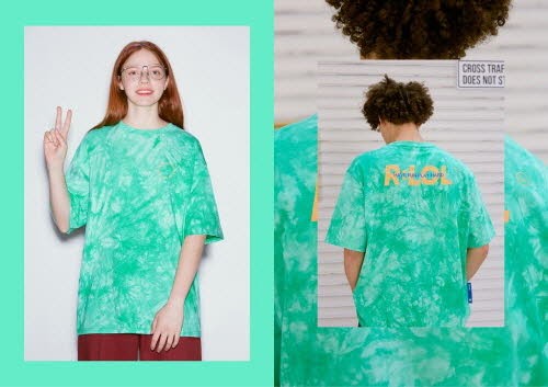 올 여름 시즌 트렌드 아이템으로 주목받는 타이 다이 티셔츠도 빼놓을 수 없다. 여유 있는 핏과 브랜드 슬로건이 재미있게 프린트 된 이 제품은 핑크, 그린, 퍼플 세 가지 컬러로 선보이며 데님소재의 하의와 매치하여 경쾌한 스타일링을 제안한다.