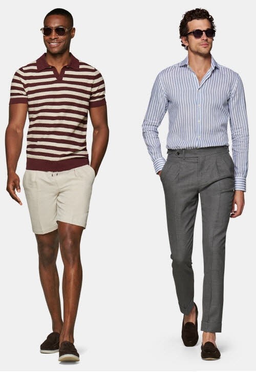 한편 수트서플라이는 휴앙지 또는 가벼운 외출 복장으로 적합한 캐주얼 상품을 전년보다 확대 출시했다. 버건디 스트라이프 패턴이 돋보이는 리넨/코튼 혼방 니트 폴로 셔츠에 화이트 반바지를 매치한 감각적인 허니문 룩을 선보였다. 또한 청량한 블루 스트라이프 셔츠에 그레이 울 팬츠를 조합해 비즈니스 캐주얼 착장도 제안했다.