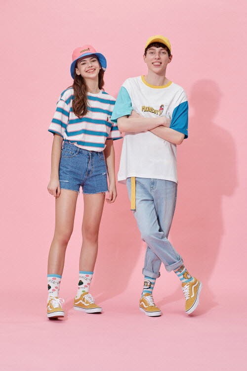 이번 협업 제품은 ‘헤지스’ 피즈 라인에서 등장하는 익살스러운 캐릭터들이 아이헤이트먼데이의 독특한 패턴과 다채로운 색감을 입은 것이 특징이다. 선명한 컬러 배색으로 톡톡 튀는 감성을 더한 티셔츠, 스트라이프와 도트 패턴의 감각적인 디자인의 양말은 물론 로고 프린팅으로 개성을 드러낸 모자 등 다양한 라이프스타일의 아이템 7종으로 출시됐다.