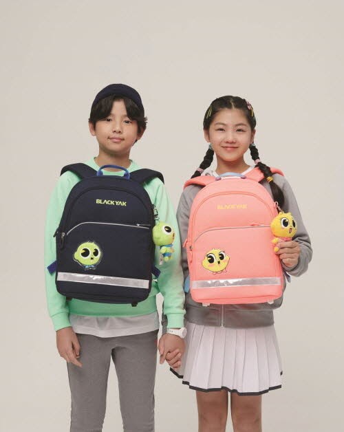 고학년들을 위한 ‘듀커백’은 앞부분 하단의 보조가방이 본체와 분리돼 크로스백으로 활용 가능한 실용적인 가방이다. 보조가방의 앞 포켓 패치는 재귀 반사 소재를 사용해 안전성을 높였고 좌우 메쉬 포켓이 적용돼 트렌디하면서 실용적인 수납공간을 자랑한다. 색상은 블랙과 네이비로 구성됐다.