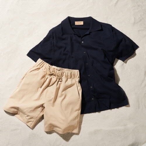 슬랙스와 매치하여 쿨 비즈 룩을 연출하거나 치노 팬츠나 허리에 밴딩과 스트링 디테일이 가미된 반바지와 매치하여 편하고 스타일리시한 트래블 룩을 완성할 수 있다
