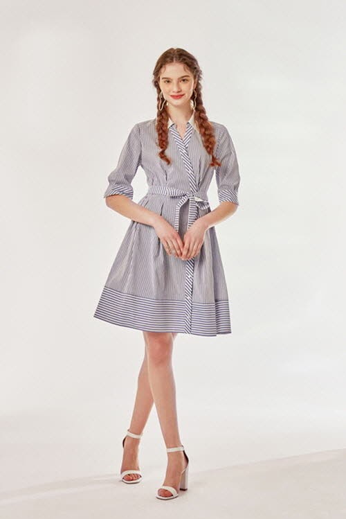 무더운 날에는 청량감이 돋보이는 화이트와 블루 컬러를 매치할 수 있다. 여름의 스테디셀러인 블루톤의 스트라이프 원피스는 보기만 해도 시원함이 느껴져 경쾌한 여름 룩으로 안성맞춤이다. 이와 함께 밝은 컬러의 슈즈를 신어 전체적인 톤의 균형을 맞출 수 있다.