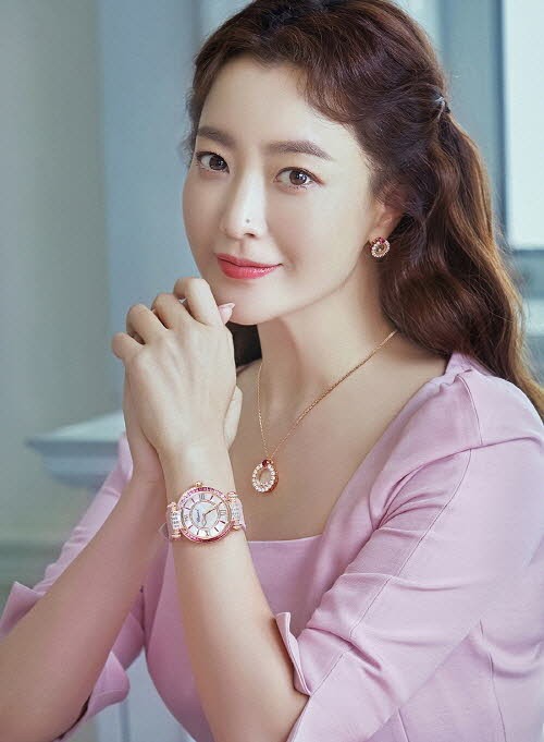 파스텔 핑크색 원피스에는 유사한 핑크 톤의 핑크 사파이어와 루비가 세팅된 임페리얼 컬렉션 워치를 착용하여 그녀의 사랑스러움을 배로 더했다. 평범해 보일 수 있는 화이트 니트에는 에메럴드의 화려함이 더해져 눈부시게 반짝이는 디아망트 에메럴드 워치를 선택해 룩에 포인트를 주었다.