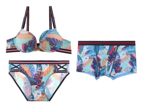 이번 신제품 컬렉션은 멀티 하와이 시리즈, 알로하 보태니컬 시리즈 2종으로 휴가지의 분위기를 담은 화려한 프린트가 특징이다. 한여름에도 쾌적하게 착용할 수 있도록 메쉬, 에어커버링 등 통기성과 촉감이 좋은 소재를 사용했으며 각각 여성용 브라 팬티와 남성용 드로즈로 구성됐다.