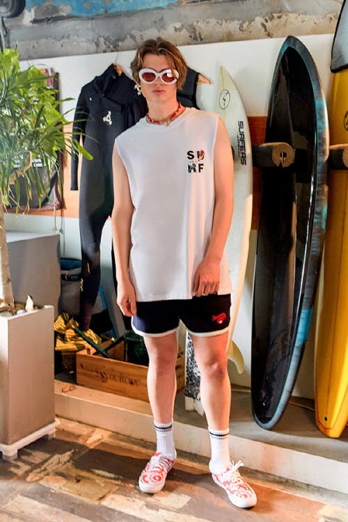 SESAME STREET ON THE BeaCh 컬렉션은 서핑을 즐기고 있는 캐릭터 아트웍으로 핫섬머 무드를 강조한 것이 특징이다. 위트 있는 아트웍이 더해진 반팔 티셔츠와 민소매 티셔츠, 반바지 외에 아이링과 볼캡의 액세서리 라인도 만나볼 수 있다. 컬러는 베이직한 화이트와 블랙부터 블루, 오렌지, 그린 등 유니크한 컬러, 그리고 날염 디테일까지 다채롭게 선보였다.
