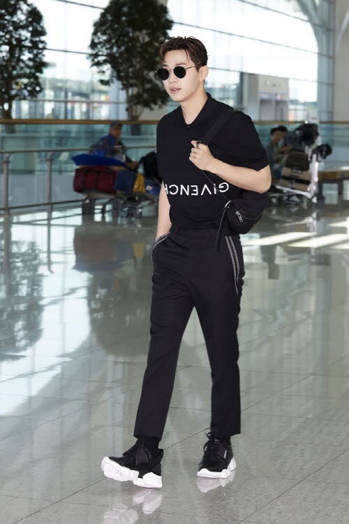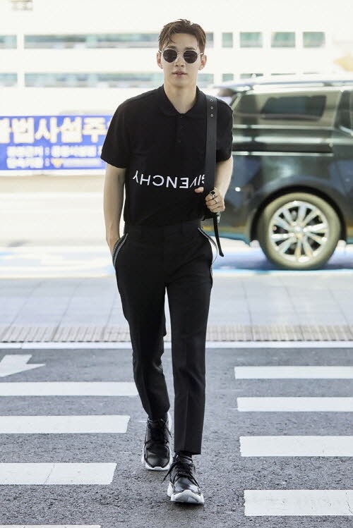 이날 헨리는 머리부터 발끝까지 올블랙으로 무장한 공항패션으로 모던하면서도 댄디한 룩을 선보였다. 깔끔한 폴로 티셔츠에 로고 트림이 돋보이는 밴드 팬츠를 매치했고 여기에 블랙 스니커즈와 고급스러운 태그 범백을 더했다. 헨리는 시크한 올 블랙 패션에 멋스러운 포인트를 놓치지 않으며 뛰어난 스타일링 센스를 드러냈다.