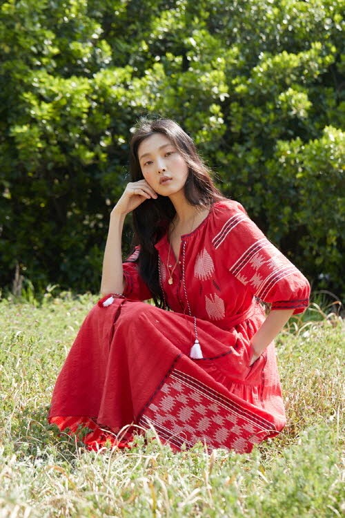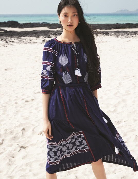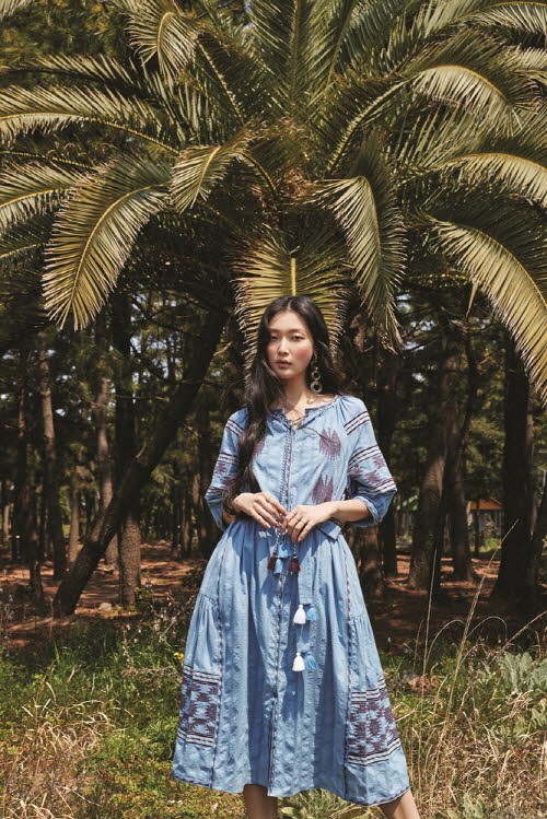 김성희는 다채로운 썸머룩을 착용하여 분위기를 압도하며 톱 모델 다운 면모를 드러냈다. 화보 속 김성희는 에스닉한 자수가 가미된 롱 썸머 드레스를 착용하여 휴양지에서도 사랑받을 수 있는 패션을 선보이고 있다.