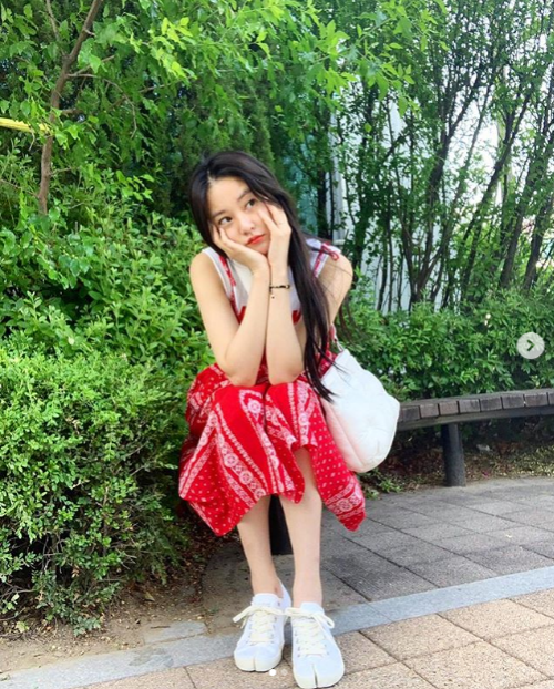 이주연 역시 인스타그램 속에서 오연서와 같은 원피스의 레드 컬러을 착용하여 사복 여신다운 남다른 패션 센스를 보여주었다. 이주연은 화이트 티셔츠와 스니커즈로 편안하면서도 트렌디한 여름 원피스 스타일링 선보이며 여름철 리얼웨이룩의 정석을 연출했다.