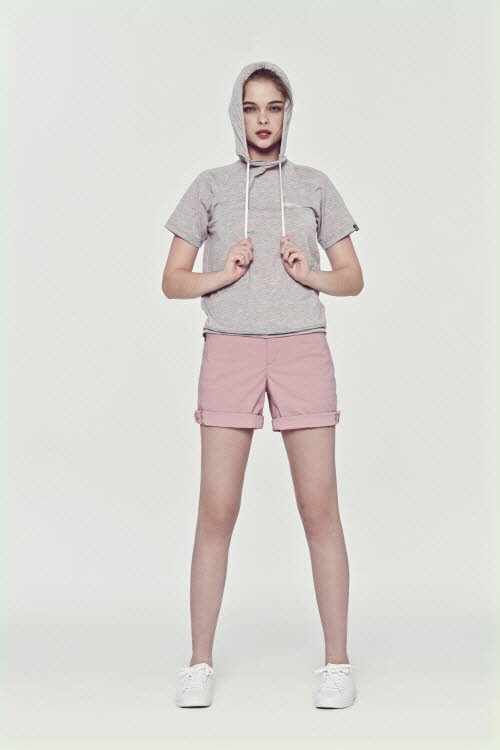 로디 후드티는 베이직한 컬러와 디자인의 반팔 후드 티셔츠로 멜란지 그레이에 은은한 살몬 컬러 스트라이프가 프린트돼 밋밋함을 없앴다. 가볍고 찰랑거리는 폴리 스판 원단으로 착용감과 신축성이 뛰어나다.