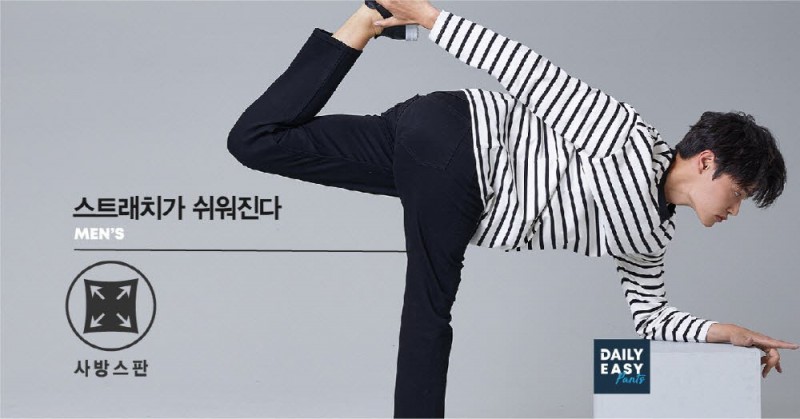 또한 사방으로 늘어나는 신축성을 업그레이드한 사방스판 기능과 숨어있는 허리 밴딩으로 착용감을 높이고 고급 원단으로 무릎 늘어짐 방지와 복원력을 더했다.