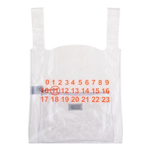 프랑스 패션 브랜드 메종 마르지엘라는 속이 훤히 비치는 비닐봉지 모양의 쇼퍼백을 선보였다. 브랜드를 상징하는 숫자 로고 그래픽이 레드, 화이트 색상으로 큼지막하게 프린트 돼 브랜드 정체성을 드러내며 동시에 포인트 디자인으로 작용한다.