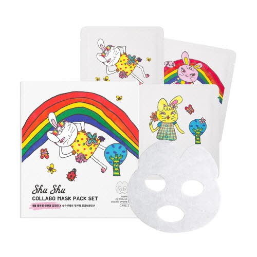 신제품 마스크팩은 패키지에 ‘슈슈앤쎄씨’의 대표 캐릭터인 슈슈의 다양한 모습을 어린이다운 생동감 있는 색채로 표현한 ▲슈슈야 하늘을 봐 ▲나무야 친구하자 ▲무지개 나라의 슈슈 등 총 3종으로 출시됐다.