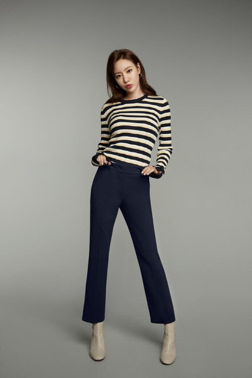 또 슬림한 핏이 돋보이는 세미 플레어핏 정장 팬츠를 착용하여 김아중의 명불허전 각선미를 돋보이게 하는가 하면 은은한 광택감이 돋보이는 새틴 스커트로 고급스러우면서도 사랑스러운 매력을 동시에 선보였다. 편안한 라운지 웨어에는 스니커즈를 매치해 멋을 더했다.