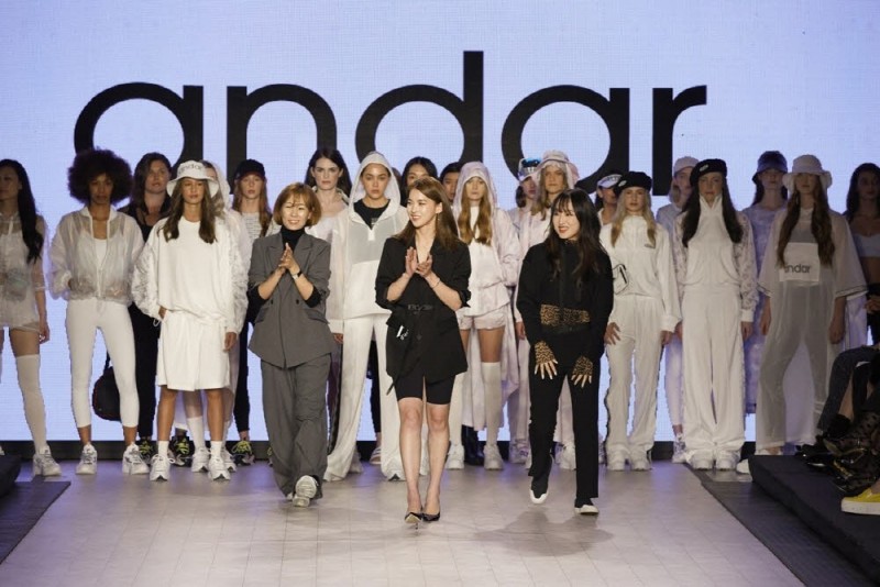 쇼가 끝난 후 마지막 피날레에 신애련 대표를 비롯해 안다르디자이너 관계자들이 함께 올라 업계 관계자들 사이에서 많은 관심과 이목이 집중됐다.