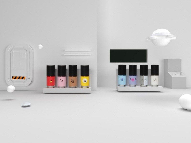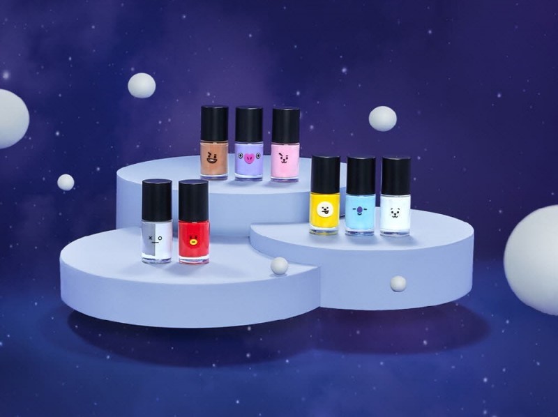 슈슈코스메틱 ‘BT21 네일컬러’에는 코야(KOYA), 알제이(RJ), 슈키(SHOOKY), 망(MANG), 치미(CHIMMY), 타타(TATA), 쿠키(COOKY), 반(VAN) 8개의 BT21 캐릭터가 컬러 별로 적용됐다.