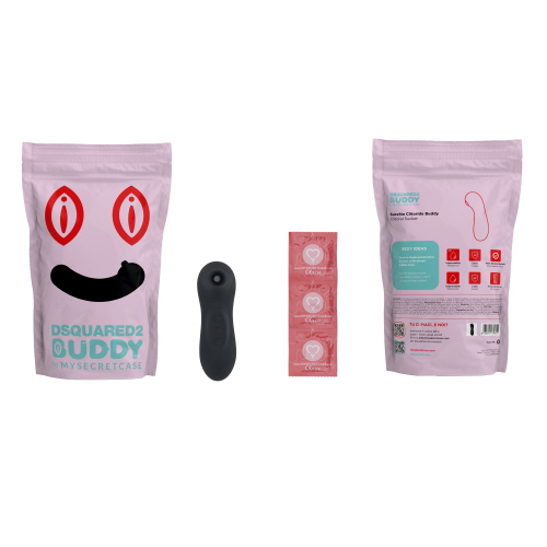 ‘디스퀘어드2 버디 바이 마이시크릿케이스’는 피부에 안전한 방수 실리콘으로 특별히 제작된 맞춤형 콜라보레이션 클리토럴 서커, 딜도, 페니스 링으로 구성되어 있다.