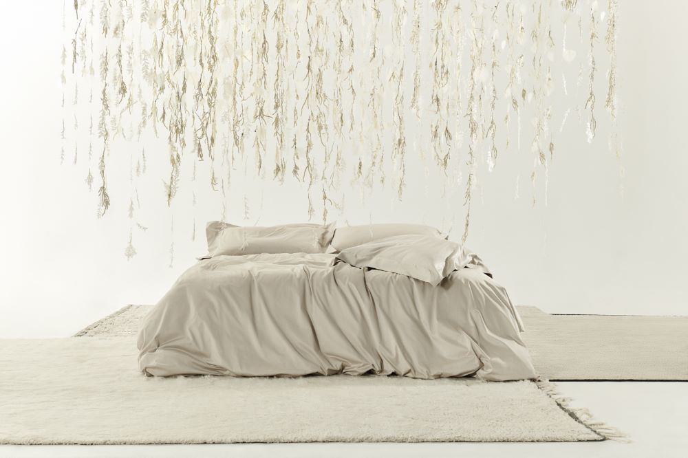 나뚜랄리즈모는 마크라메 레이스, 브로케이드 자카드, 헴스티치 등 기술적 혁신을 통해 심미적 완성도를 높여온 ‘프레떼’가 우수한 기술력을 바탕으로 지속 가능성에 입각해 개발한 리넨으로 100% GOTS(국제 유기농 섬유 표준) 인증 유기농 새틴 면에 유기 농법으로 재배한 유기 염료만을 사용해 일체의 합성 화학 물질을 첨가하지 않고 염색하여 마감했다.