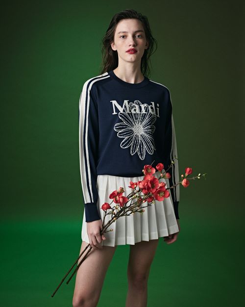 가볍고 편안하게 착용할 수 있는 니트 탑은 플라워 마르디 및 블룸 마르디 그래픽과 어깨부터 소매 라인을 따라 내려오는 스트라이프 포인트로 스포티한 무드를 강조했다. 컬러는 클래식한 화이트와 네이비, 싱그러운 그린과 화사한 핑크, 스카이 블루로 유쾌하게 풀어냈다.