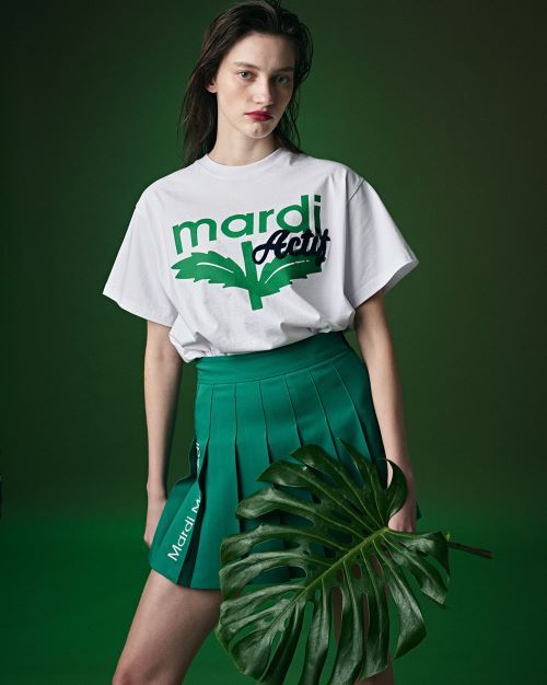 ‘꽃밭 한가운데서’라는 의미의 ‘au milieu d'un champs de fleurs’을 슬로건으로 한 컬렉션은 과감한 전면 그래픽과 계절감이 느껴지는 컬러로 활기찬 봄의 시작을 표현했다. ‘마르디 메크르디’의 로고가 돋보이는 니트웨어와 티셔츠는 물론 악티프 컬렉션을 위해 새롭게 제작된 로고 패치의 기능성 탑과 플리츠스커트 등을 선보이며 보다 확장된 테니스 룩들을 만날 수 있다.