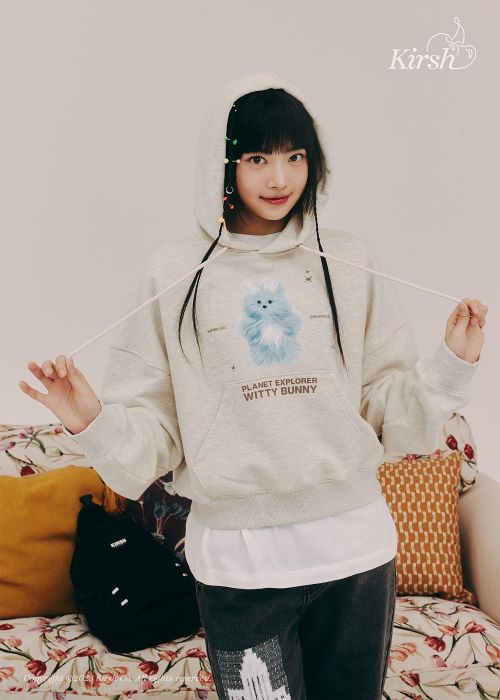 홍은채가 착용한 위티 버니 플랜트 익스플로어 크롭 후드는 위티버니를 전사와 홀로그램 나염 기법으로 연출한 포인트가 돋보이며 체리 아치 로고 크롭 후디는 ‘키르시’의 시그니처 로고인 체리를 전면에 배치한 감각적인 스타일이 눈길을 끈다. 또한 펠트 원단의 아플리케 자수 아트웍이 돋보이는 아치 체리 로고 후디와 스웻 팬츠 셋업도 만날 수 있다.