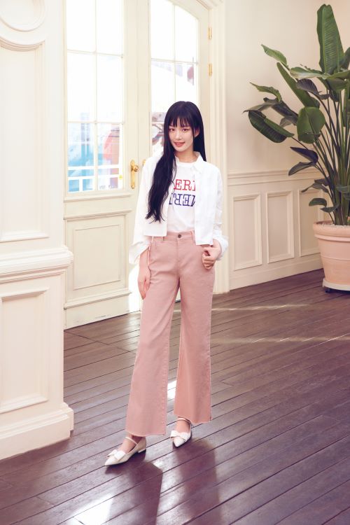 마지막으로 이유비는 화이트 블라우스와 티셔츠를 레이어드하고 핑크 와이드 팬츠로 포인트를 살려 봄맞이 차림의 다채로운 스프링룩을 연출했다.