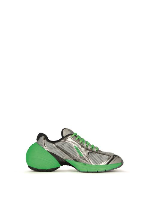 입체적인 질감과 프린팅, 고무 소재 디테일들이 스니커즈에 강렬한 에너지를 실어주었다. 스니커즈의 아웃솔은 메쉬 소재를 모티프로 한 독특하고 입체적인 형태로 구현되었고 4G 로고와 지방시 레터링 로고가 더해진 측면은 버블 쿠션과 함께 강렬한 에너지를 표현해 준다.