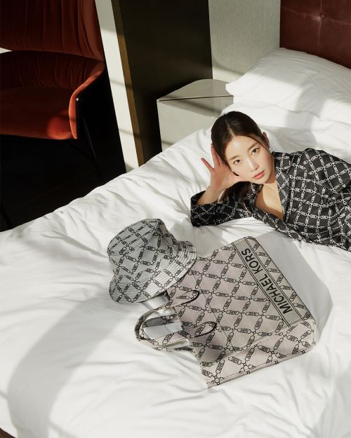 기은세는 시크한 스타일의 수트 셋업에 사이즈가 다른 두개의 백을 조화롭게 믹스매치하거나 편안하면서도 럭셔리한 분위기를 자아내는 홈웨어룩에 MK 로고 패턴의 슬라이드 슈즈를 매치해 스타일을 완성했다.