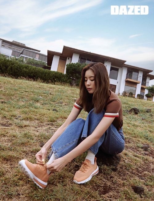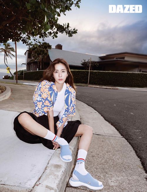 화보 속 그녀는 석양이 지는 도로 위에서 하와이안 셔츠를 착용해 고혹적인 표정과 함께 남다른 분위기를 자아내며 스카이 컬러 샌들을 매치해 평소와 다른 유니크한 반전 매력을 발산했다. 또 다른 화보에서는 잔디밭 위에 앉아 내추럴한 포즈로 데님 팬츠에 컬러감이 돋보이는 스니커즈를 활용한 캐주얼 스타일을 완벽 소화해냈다.