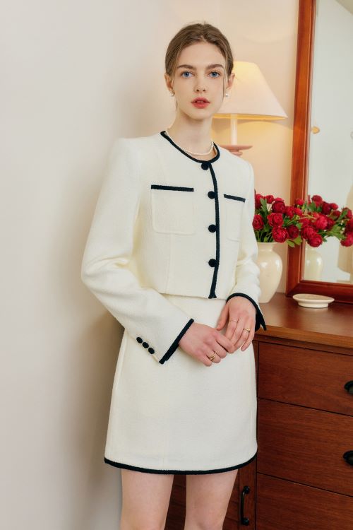 아우터로는 간절기 포멀하면서도 일상룩으로도 편하게 활용할 수 있는 트위드 소재가 인기다. 플랫폼 하고에서는 최근 2주 간 검색어 순위 중 트위드가 전주 대비 88% 이상 늘어나는 등 관련 제품을 찾는 고객들이 급증했다.