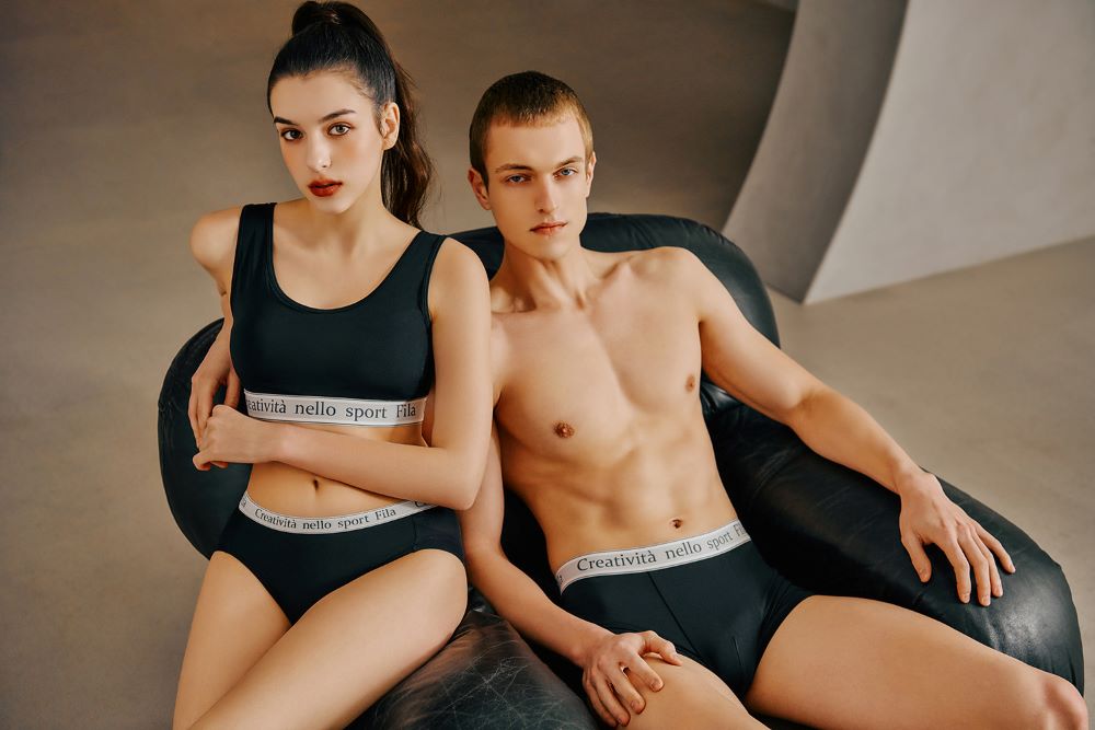 휠라벨로는 ‘휠라’의 프리미엄 스포츠 헤리티지에서 영감을 얻어 스포티하고 스타일리시한 디자인의 스포츠 밴딩 브라탑을 메인으로 남여 드로즈를 더해 컬렉션을 완성했다.