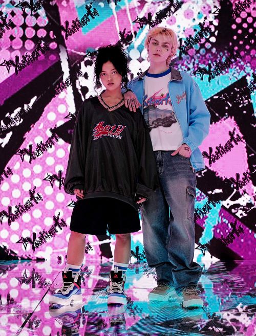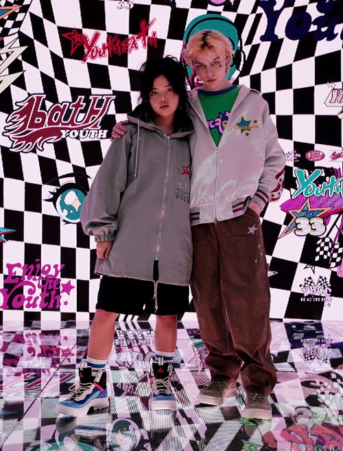 대담한 컬러 팔레트와 그래픽으로 완성한 뉴트로 무드와 ‘유쓰배쓰’만의 독창적인 아이디어가 돋보이는 이번 컬렉션은 자유분방하면서도 위트 있는 스트리트룩의 절정을 보여준다.