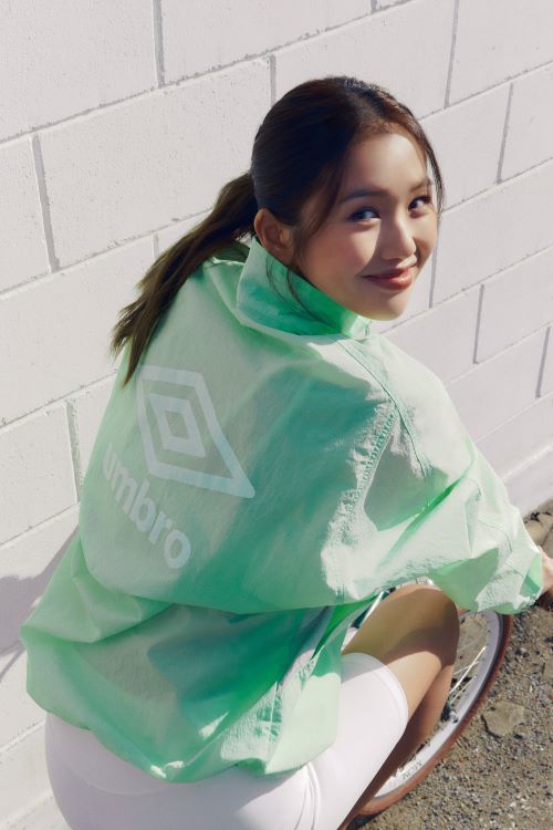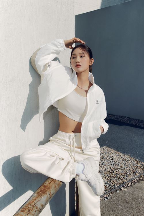 캠페인 속 미미가 착용한 딜라이트 제품은 ‘엄브로’의 독보적인 우븐 셋업 시리즈로 스포츠와 일상의 경계를 넘나드는 하이브리드 데일리웨어를 제안한다.