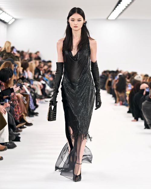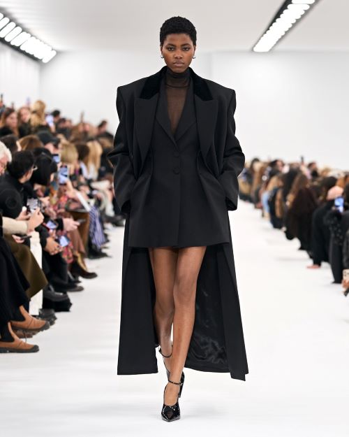 오트 쿠튀르 아틀리에에서 제작된 블랙 코트는 새틴, 트리코틴, 캐시미어 와 모헤어 등의 소재로 선보였으며 뒷면이나 허리 부분에 반전된 주름 장식과 허리에 단추가 있는 실루엣의 수트 재킷은 밑단만 시스루로 디자인되어 미니 드레스를 현대적으로 재해석한 느낌을 준다.
