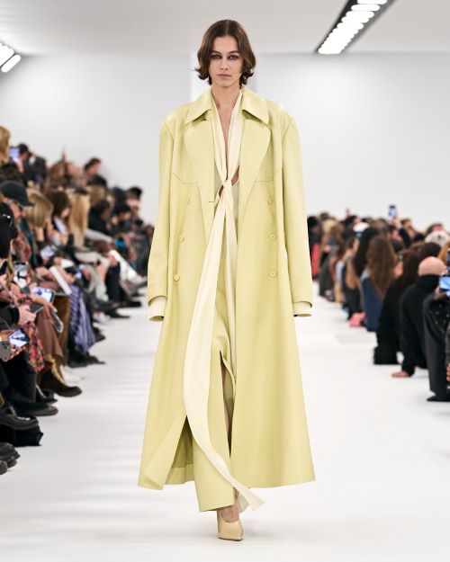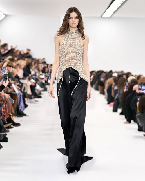 파리지앵의 시크함과 아메리칸의 쿨 무드도 느껴볼 수 있다. 현대적인 이브닝 실루엣은 우아한 올 스웨트 또는 올 데님 룩에 적용되어 새로운 포멀룩을 제안해 주었으며 테일러링 소재와 본딩 처리된 데님 소재의 코트와 재킷은 트위드 텍스처를 구현하기 위해 립 앤 리페어 기법이 사용되었다.