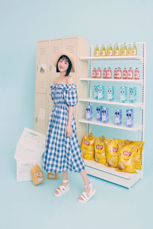 마지막으로 이유비는 프릴과 리본 장식으로 포인트를 준 여성스러운 빅 체크 오프숄더 원피스로 올 여름 핫썸머 시즌 바캉스 룩을 연출했다.