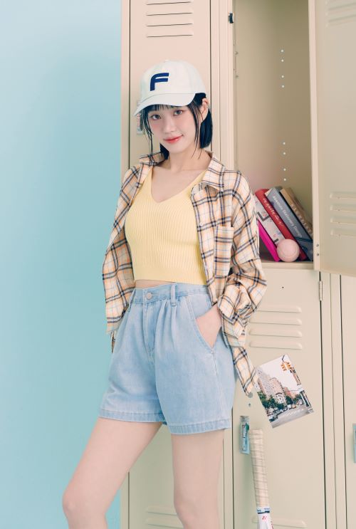 또한 화보 속 이유비는 화사한 레몬 컬러의 크롭기장 니트탑과 페일 데님숏츠에 아우터형 체크 블라우스를 걸쳐 편안하면서 스타일을 갖춘 원마일 애슬레저 스타일을 선보였다.