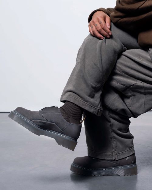 두 가지 1461 슈즈로 구성된 컬렉션은 부드러우면서 방수되는 블랙과 그레이 누벅 WP 가죽으로 제작되었으며 두 색상 모두 굽 있는 벡스 아웃솔을 장착했다. 그레이 1461 슈즈는 반투명한 아이스드 솔에 토날 에크루 웰트 스티치, 블랙 1461 슈즈는 스모크 솔에 ‘닥터마틴’ 시그니처 옐로우 웰트 스티지로 완성도를 높였다.