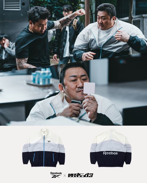 ‘리복’과 ‘범죄도시3’의 콜라보레이션 바람막이와 티셔츠는 리복의 공식 온라인 스토어 및 스타필드 코엑스몰점, 스타필드 안성점, 롯데백화점 광복점, 동탄점, 현대백화점 목동점 오프라인 매장에서 만나볼 수 있다.