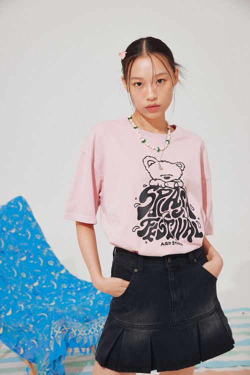 워터 페스티벌의 다양한 요소들을 그래픽으로 연출한 ‘워터 밤 드로잉 티셔츠’는 다채로운 컬러와 화려한 패턴으로 에너제틱한 분위기를 연출할 수 있으며 아이코닉 베어와 시즌 주제인 ‘SPLASH FESTIVAL’ 로고를 활용한 ‘스플래시 페스티벌 티셔츠’는 피그먼트 워싱으로 빈티지한 무드를 더했다.