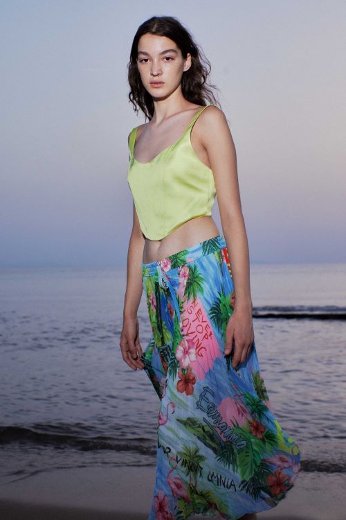과감하고 컬러풀한 패턴이 매력적인 플로럴 스커트는 휴양지에서 절대 빠질 수 없는 아이템 중 하나로 바캉스 룩을 연출하기 제격이다. 비비드한 컬러감이 돋보이는 탑과 함께 매치해준다면 그 어느 때보다 화려하고 러블리한 휴양지 패션을 완성할 수 있다.